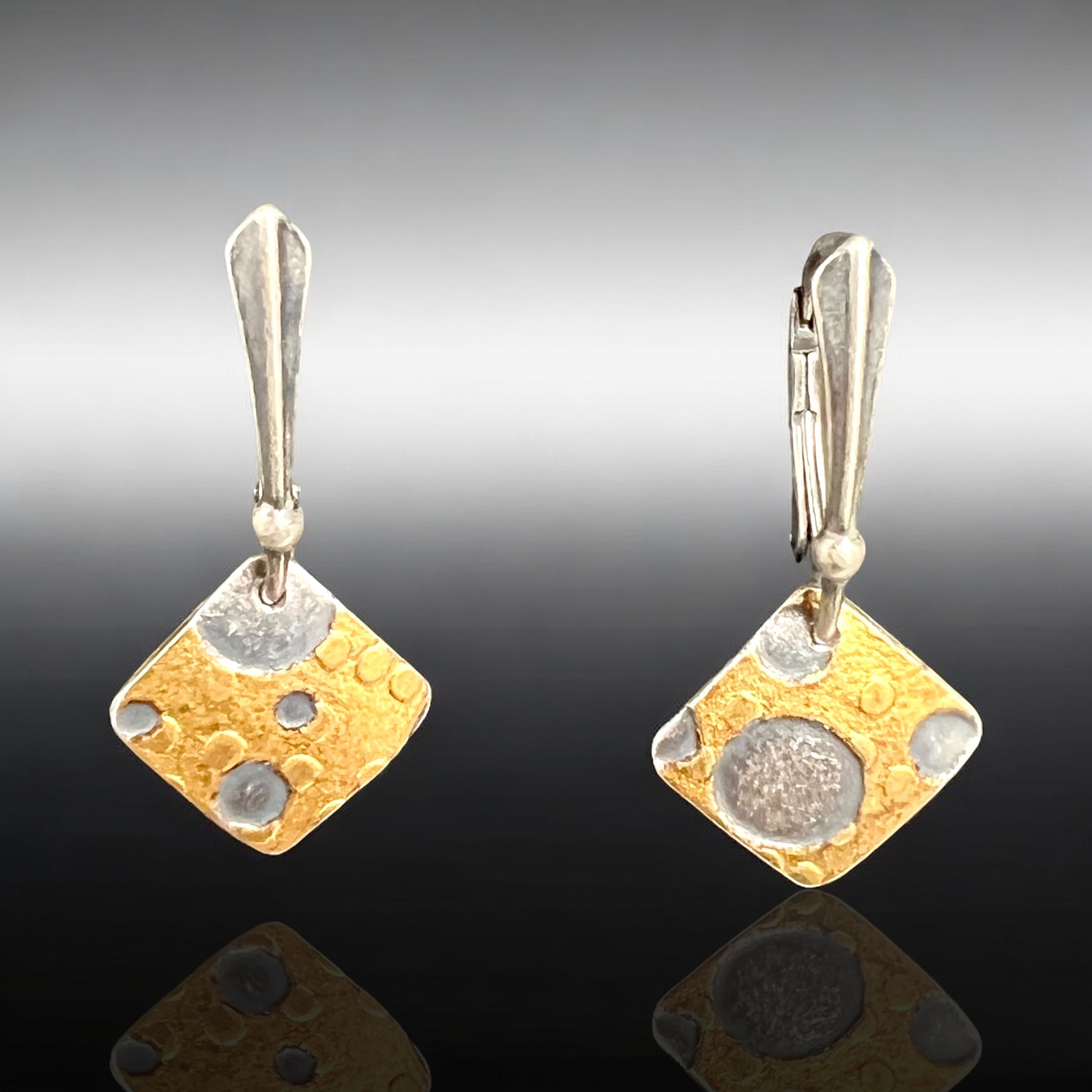 Handmade earrings with 24K gold applied over fine silver, creating a refined surface with subtle circular textures. Lightweight and minimalist, these dangles balance elegance with modern artistry. A versatile one-of-a-kind pair that transitions effortlessly from everyday wear to statement occasion.