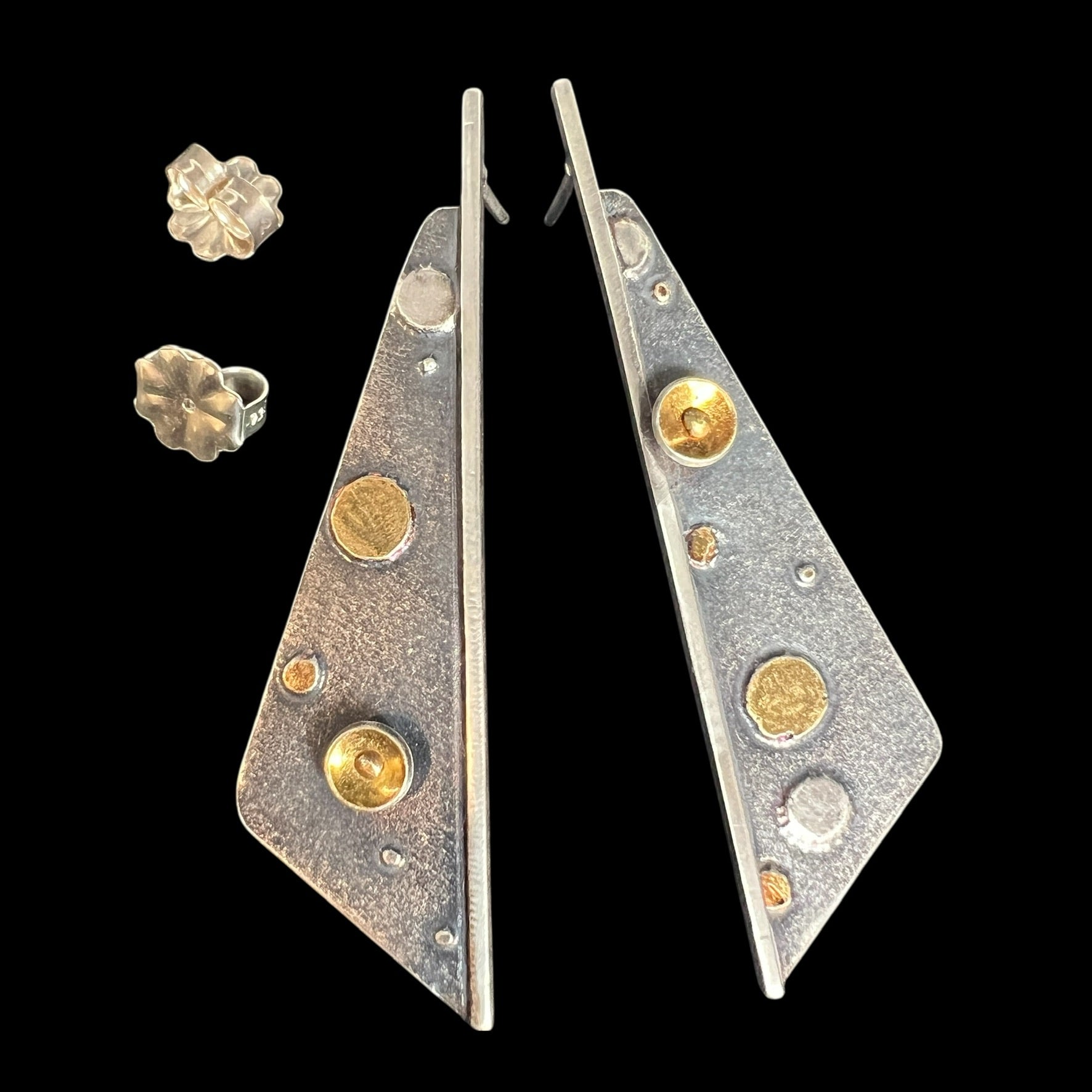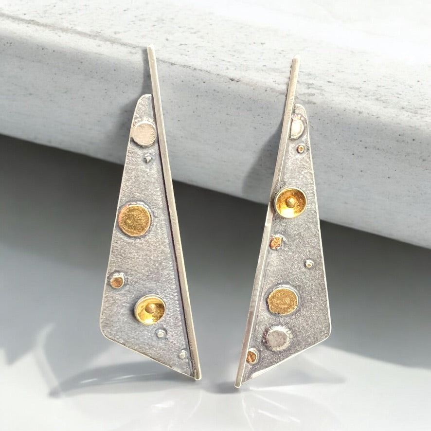Sterling Silver and 24K Gold Long Triangular Post Earrings